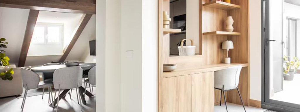 El edificio se encuentra en el prestigioso barrio de Salamanca. Se trata de un edificio construido en 1940, con una bonita fachada que recuerda la elegancia y encanto de este barrio. La vivienda, se le hizo una reforma integral con las mejores calidades y se entrega amueblada. Es una quinta planta exterior de 132 m2 construidos. Comodidades: Tiene un recibidor que da acceso a …