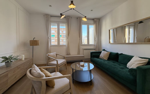 Espectacular piso en 4ª planta de finca clásica con entrada por paso de carruajes. Súper luminoso en todas sus estancias, con techos de 3,10 mts de altura, orientado a Oeste en su área social y a Sur y Este en la zona de dormitorios. Está en perfecto estado y semi amueblado.