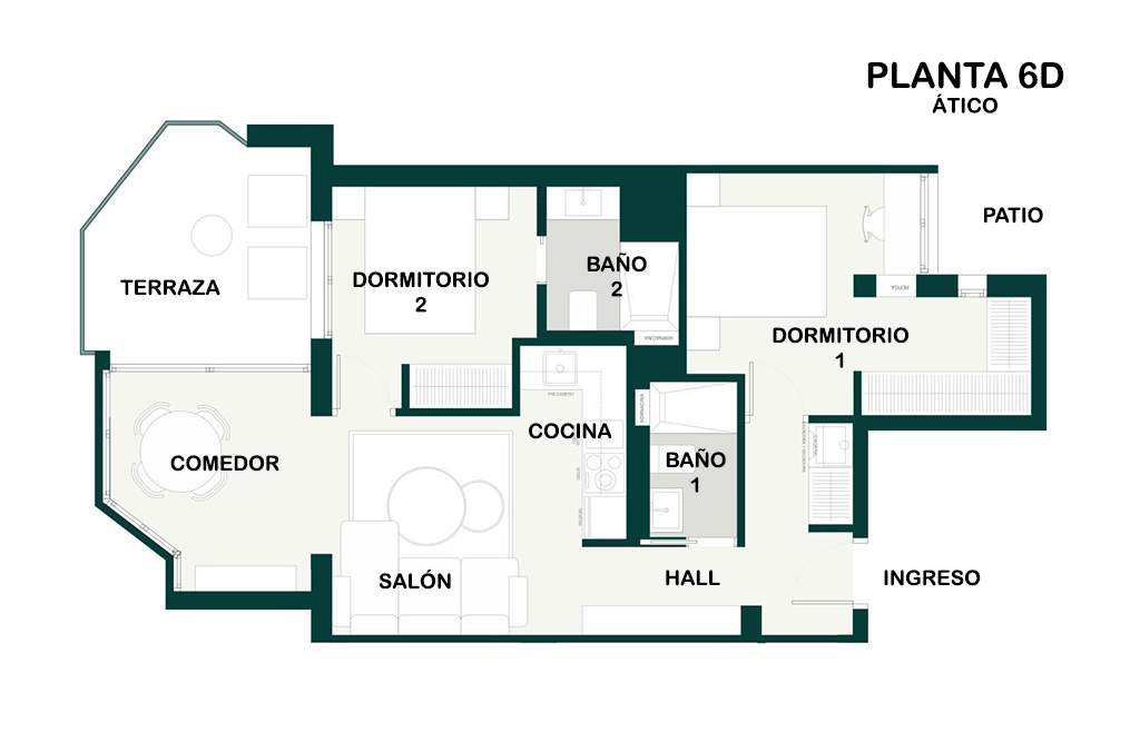 - 2 Dormitorios